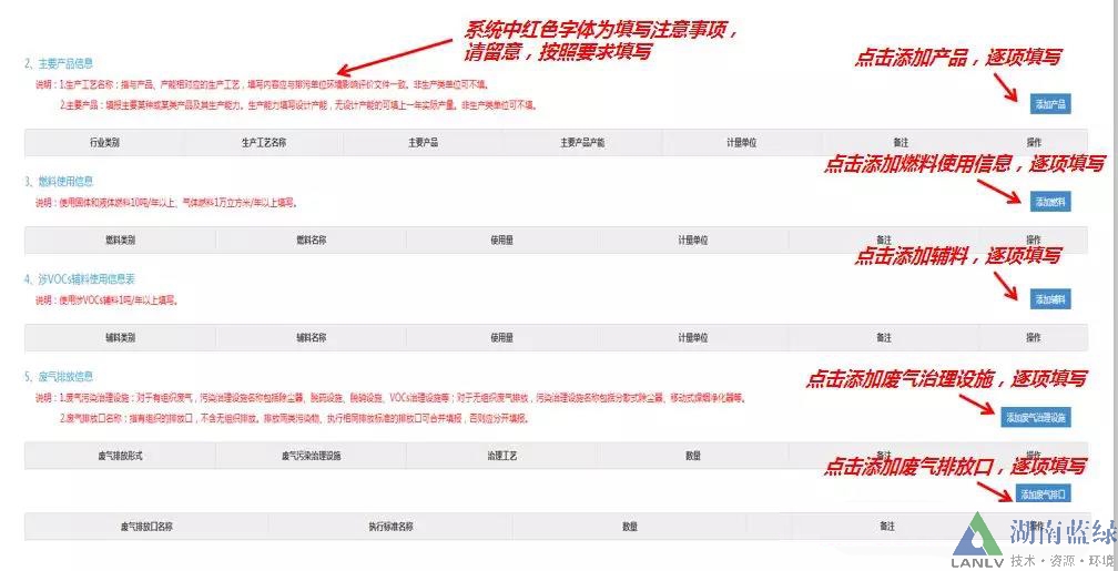 3.5、填寫(xiě)主要產(chǎn)品信息、燃料使用信息、涉VOCs輔料使用信息表、廢氣排放信息、廢水排放信息、工業(yè)固體廢物排放信息、其它需要說(shuō)明的信息。排污單位根據(jù)實(shí)際情況填寫(xiě),按要求填報(bào)。