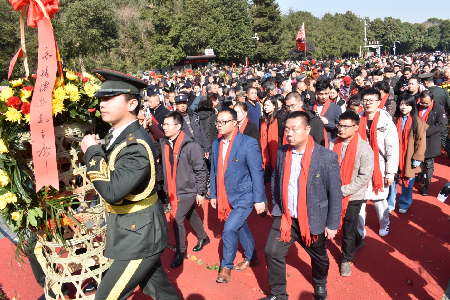 湖南藍綠全體員工到韶山參加紀念毛澤東誕辰130周年活動并敬獻花籃